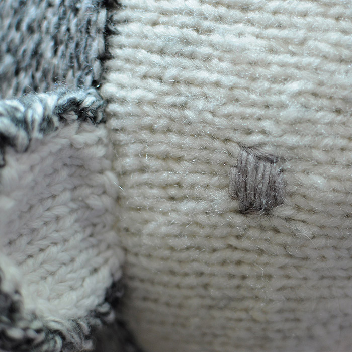 Виріб плетений спицями з акрилової пряжі, має вишиті очі та носик та гіпоалергенний наповнювач.
