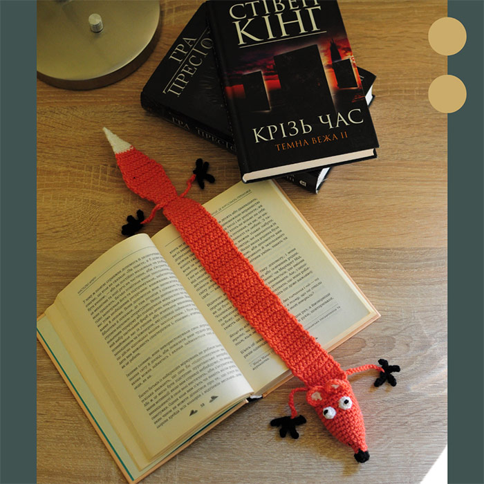 Красиві та цікаві книжки заслуговуть на гарні закладки. З цим і допоможе гачкована вручну закладка-лисичка. Яскрава, весела лисичка готова переїхати до вашої бібліотеки та читати разом з вами будь-яку літературу.