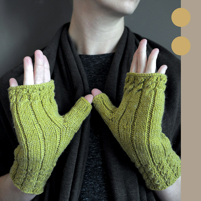 Мітенки теплого оливкового кольору - плетені вручну з акрилової пряжі.