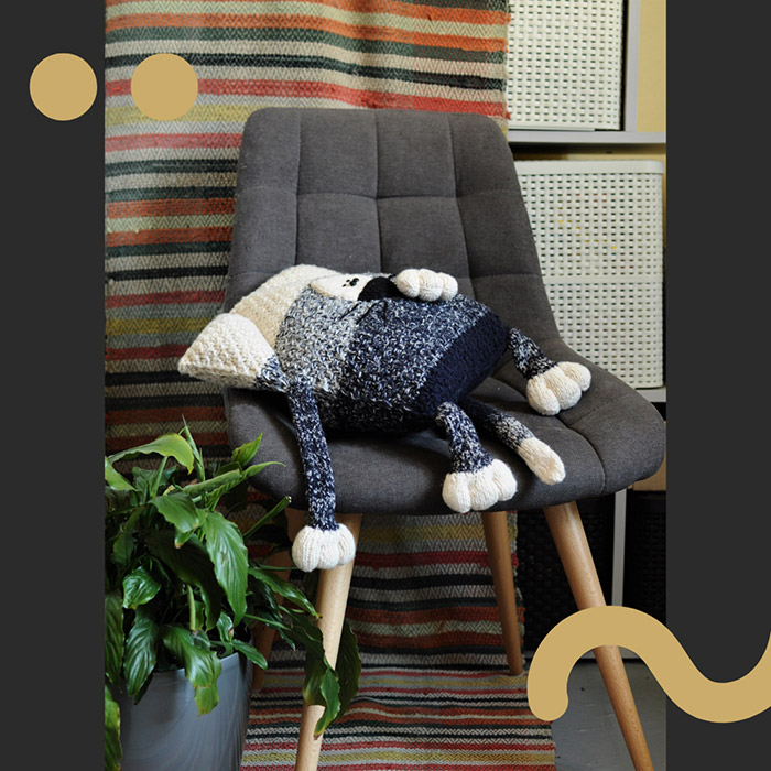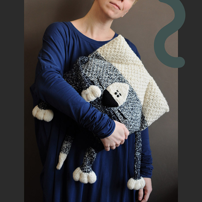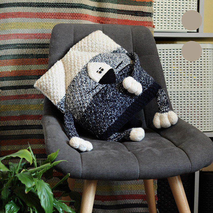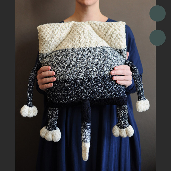 Часто можна зустріти словосполучення 'синій кит' але зовсім рідко 'синій кіт'. Коти можуть бути будь-якого кольору, якщо вони котоподушки, тож, чого б не синій? Неймовірно гарне ручне плетіння поєднало в собі темно-синю та молочно-бежеву пряжі через кольорову меланжеву розтяжку, і з'явився чудовий та фактурний котик.